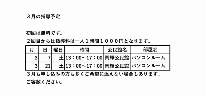 遊育学習会3月の指導予定