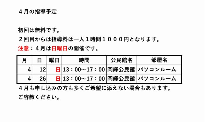 遊育学習会4月の指導予定