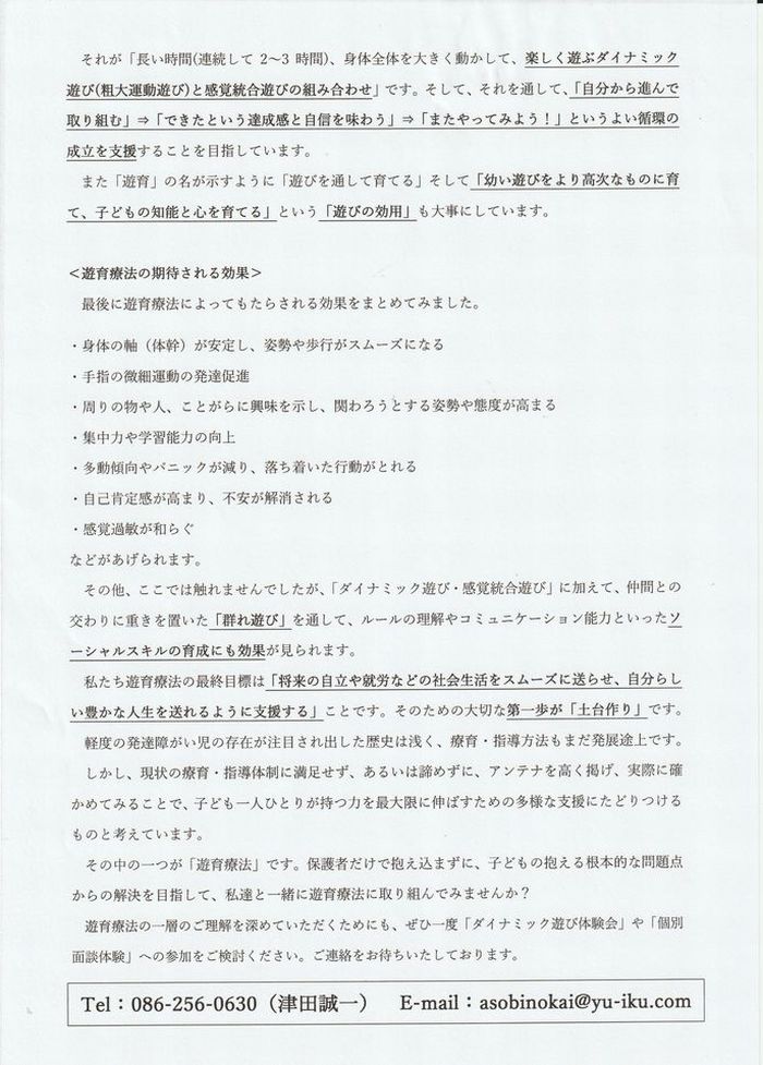 TEL:086-256-0630 Mail:asobinokai@yu-iku.com